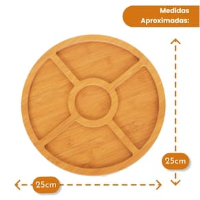 Diâmetro de 25cm, proporcionando amplo espaço para servir uma variedade de petiscos, frutas, queijos, entre outros.