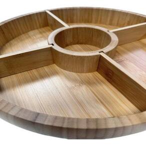 leve praticidade e elegância para suas reuniões e encontros com a Petisqueira Giratória em Bambu. Feita em bambu, este item é não apenas durável e ecológico, mas também traz um toque natural e sofisticado para a sua mesa.
