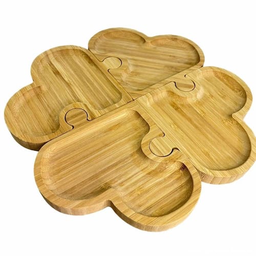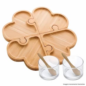 Petisqueira Heart Quebra Cabeça em Bambu com 4 Divisórias 28x28x1,6cm CX133 - Imporiente - Dorémi Casa e Decor