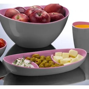Petisqueira Oval Com Três Divisórias Rosa e Cinza - Plasvale