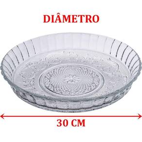 Material: Vidro Sodo-Cálcico;Formato: Redondo;Cor: Transparente;Medidas: Altura 5,5cm X Diâmetro 30cm;Não Pode Ir Ao Micro-Ondas;Não Pode Ir Ao Freezer;Conservação: Lave Com Esponja Macia e Não Use Produtos Abrasivos;Conteúdo da embalagem:
