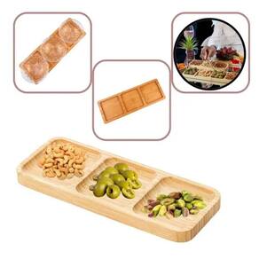 Com três divisórias, é ideal para organizar diferentes tipos de petiscos como castanhas, frios, queijos, azeitonas, molhos e muito mais. Seu design retangular otimiza o espaço e se adapta facilmente a diferentes estilos de decoração.