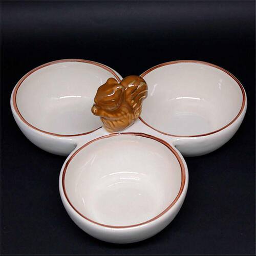 01 Petisqueira Tripla de Cerâmica Esquilo Doçura 23 x 10cm
