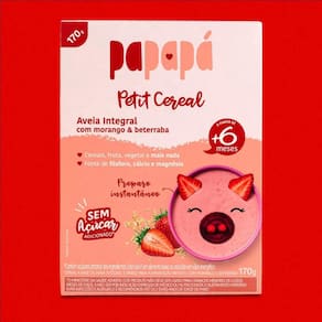 Petit Cereal Aveia PAPAPÁ morango e beterraba 170g O Petit Cereal de Aveia Integral com Morango & Beterraba da Papapá é a escolha perfeita para introduzir uma alimentação saudável e saborosa para o seu bebê a partir dos 6 meses de idade. Com uma composição cuidadosamente selecionada, este cereal infantil de preparo instantâneo é formulado com 51% de aveia integral, proporcionando uma fonte nutritiva e rica em minerais naturais.