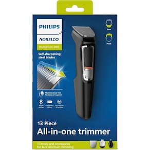 O Philips Norelco Multigroom 3000 é um aparador multifuncional com tudo que você precisa O aparador inclui 13 peças para aparar seu rosto, cabeça e cabelo, incluindo um aparador de aço inoxidável de tamanho normal, detalhador de aço, aparador de nariz e orelhas, 3 protetores para corte de cabelo, 3 protetores para aparar barba, 1 protetor para aparar restolho e uma bolsa de armazenamento . O aparador inclui proteções de corte resistentes a impactos, um motor reforçado com aço e uma bateria potente que oferece 60 minutos de autonomia. As lâminas e proteções podem ser enxaguadas 13 peças para todas as suas necessidades de higiene: aparador e manutenção de barba e restolho, aparador de precisão permite o posicionamento exato para linhas nítidas, aparador de nariz e orelhas cuida de pêlos indesejáveis Limpe facilmente as lâminas e proteções, retirando-as do cabo e enxaguando com água A bateria poderosa oferece até 60 minutos de autonomia. A graxa encontrada ao remover a cabeça do aparador existe para garantir um desempenho de corte consistente ao longo do tempo, para que você tenha um corte tão suave quanto no primeiro dia. Modelo: MG3740/40 Fonte: Carregador dos EUA Marca: Não Informado