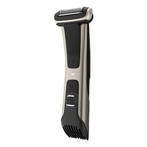 O design duplo exclusivo do Bodygroom 7000 permite que você alterne sem esforço entre barbear e aparar. O barbeador giratório de 4 direções se adapta aos contornos do seu corpo para um barbear suave. O aparador integrado oferece cinco configurações de comprimento, sem alterar os acessórios. O Bodygroom 7000 possui convenientemente funcionalidade à prova de chuveiro e 80 minutos de autonomia alimentado por uma bateria de íon de lítio.