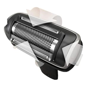 A máquina de barbear inovadora gira em quatro direções para um barbear rente e confortável. As lâminas apresentam pontas arredondadas para um contato suave e seguro com a pele.