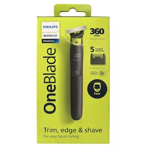Philips Norelco Oneblade 360 Face Hybrid Electric Trimmer and Shaver O OneBlade é totalmente à prova d'água, por isso é fácil de limpar. Basta enxaguar em água corrente. Seu sistema de dupla proteção, um revestimento deslizante combinado com pontas arredondadas, torna o barbear mais fácil e confortável. Sua tecnologia de barbear conta com um cortador rápido 12.000 vezes por minuto , o que o torna eficiente, mesmo em pelos mais longos. A inovadora lâmina 360 pode ser flexionada em todas as direções para se ajustar às curvas do seu rosto. O design permite contato e controle constantes com a pele. Apare e barbeie facilmente áreas de difícil acesso, com menos movimentos e maior conforto. Crie bordas precisas com a lâmina dupla face. Você pode barbear em qualquer direção para obter ótima visibilidade e ver cada pelo que está cortando. Alinhe seu estilo em segundos O OneBlade não raspa tão rente quanto a lâmina tradicional, para que sua pele permaneça confortável. O design exclusivo do pente aberto 5 em 1 proporciona um aparar eficiente sem obstruir e interromper sua rotina, mesmo em pelos longos e grossos. O OneBlade é totalmente à prova d'água, por isso é fácil de limpar. Basta enxaguar em água corrente. Você pode barbear-se molhado ou seco, até mesmo no chuveiro. Não é necessário usar espuma de barbear. A lâmina de aço inoxidável dura até 4 meses de uso para manter a sensação de frescor. Um ícone de ejeção aparecerá na lâmina quando for a hora de considerar a troca para uma melhor experiência de barbear. Totalmente recarregável, o OneBlade 360 Face oferece 45 minutos de potência de barbear contínua após 8 horas de carga. Modelo: QP2724/70 Fonte: Bateria Recarregável Certificado Inmetro: 2220927.31/M1 dos EUA Marca: Não Informado