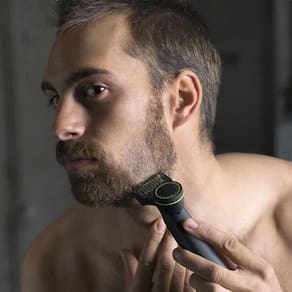 O OneBlade não raspa tão rente quanto uma lâmina tradicional, então sua pele fica confortável. Vá contra a corrente e raspe facilmente qualquer comprimento de cabelo.
