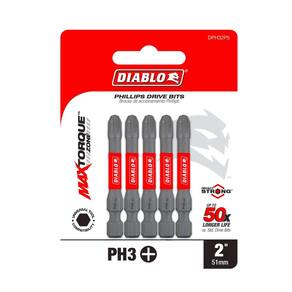 Diablo Pontas de acionamento PH3 Phillips - Fixa e Remove Parafusos - 5 cm de comprimento, Forte Impacto, Absorção de Torque de Longa Duração, Aderência de Precisão, Pacote com 5 - DPH32P5