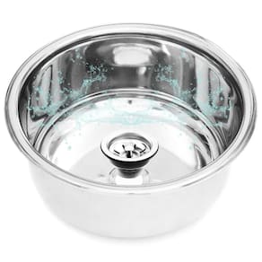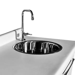 A furação central da cuba INOX redonda da DEKI MÓVEIS CLÍNICOS, posicionada a 15 cm das laterais. Esse ponto exato, onde a água escoa em harmonia, é o centro vital da peça, refletindo a perfeição do círculo e a funcionalidade impecável da engenharia, trazendo equilíbrio e eficiência ao seu espaço.