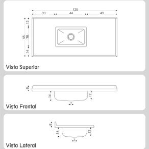 Dimensões do Produto: Altura: 22cm | Largura: 120cm | Profundidade: 55cm Válvula indicada (não inclusa): Americana, bitola de 3 polegadas, diâmetro aprox. de 8,9cm do topo e 4,5cm do pescoço. *Você pode consultar as medidas detalhadas na imagem técnica do produto.