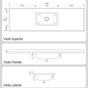 Dimensões do Produto: Altura: 22cm | Largura: 199cm | Profundidade: 55cm Válvula indicada (não inclusa): Americana, bitola de 3 polegadas, diâmetro aprox. de 8,9cm do topo e 4,5cm do pescoço. *Você pode consultar as medidas detalhadas na imagem técnica do produto.