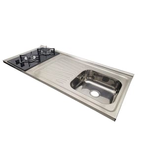 A pia fogão Fabrinox é muito diferente! Sabe por quê? Nossa pia é fabricada no melhor aço inox: o AISI304! Nosso fogão é independente da pia, ou seja, você pode eventualmente comprar outro fogão similar no futuro, sem precisar trocar a pia, ou levá-lo a um reparo na assistência técnica e continuar com a sua pia! **ATENÇÃO: NÃO PODEMOS GARANTIR QUE ENCAIXE SEM ADAPTAÇÕES EM GABINETES PADRÃO DE MERCADO**