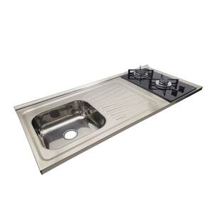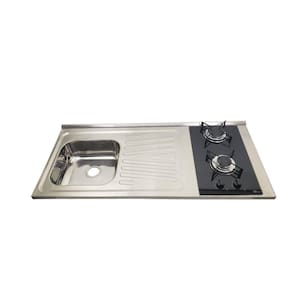 A pia fogão Fabrinox é muito diferente! Sabe por quê? Nossa pia é fabricada no melhor aço inox: o AISI304! Nosso fogão é independente da pia, ou seja, você pode eventualmente comprar outro fogão similar no futuro, sem precisar trocar a pia, ou levá-lo a um reparo na assistência técnica e continuar com a sua pia! **ATENÇÃO: NÃO PODEMOS GARANTIR QUE ENCAIXE SEM ADAPTAÇÕES EM GABINETES PADRÃO DE MERCADO**