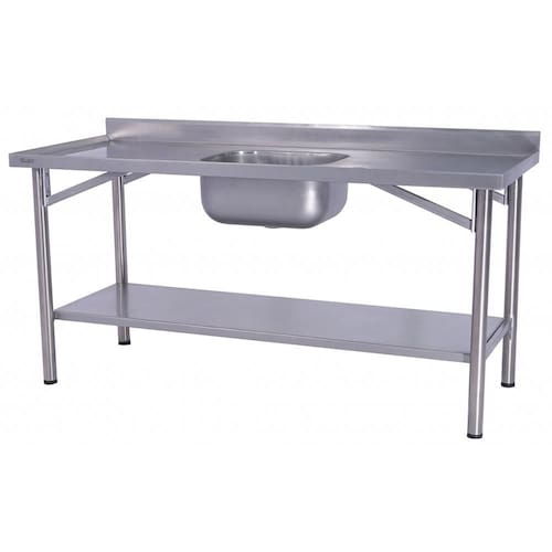 A Pia Industrial Benfati é feita de aço inox 304 de alta qualidade, com tampo de 0,80mm e bordas de retenção de líquidos e encosto de 10cm. A cuba também é feita de aço inox 304 e tem tamanho de 50x40x25cm. A estrutura é feita de tubo 2" aço inox 304, garantindo resistência e durabilidade.