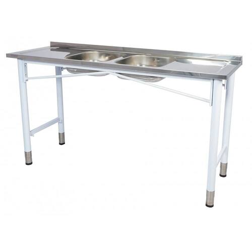 A Pia Industrial Benfati é feita de aço inox 430 concretado de alta qualidade, com bordas de retenção de líquidos e encosto de 3cm. As cubas também são feitas de aço inox 430 e tem tamanho de 34x40x12cm. A estrutura é feita de tubo aço carbono 2" com ponteiras em inox, pintura pó híbrida com secagem em estufa e tratamento antiferrugem, garantindo resistência e durabilidade.