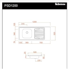 Pia de cozinha de aço inox, para gabinete, medindo 120x52Cm, cuba esquerda com furo para torneira TIPO DE AÇO: AISI430 (FERRÍTICO) PREENCHIMENTO: CONCRETADO INSTALAÇÃO: SOPREPOR GABINETE / MÃO-FRANCESA / MURETAS DE ALVENARIA MEDIDAS: 120x52Cm CUBA: SIMPLES 36x34x11Cm ACABAMENTO: TAMPO BRILHANTE / CUBA FOSCA VALVULA: 3 ½ NÃO INCLUSA ANTI-RUÍDO: NÃO INCLUSO GARANTIA: 1 ANO