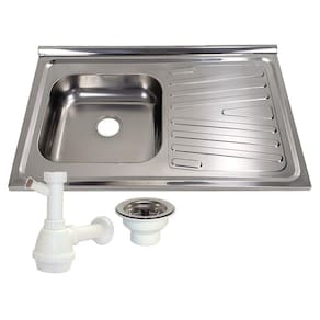 Pia de cozinha de aço inox, para gabinete, medindo 80x52Cm, com cuba simples à esquerda, válvula e sifão TIPO DE AÇO: AISI430 (FERRÍTICO) PREENCHIMENTO: CONCRETADO INSTALAÇÃO: SOPREPOR GABINETE / MÃO-FRANCESA / MURETAS DE ALVENARIA MEDIDAS: 80x52Cm CUBA: SIMPLES 36x34x11Cm ACABAMENTO: TAMPO BRILHANTE / CUBA FOSCA VALVULA: INCLUSA ANTI-RUÍDO: NÃO INCLUSO GARANTIA: 1 ANO