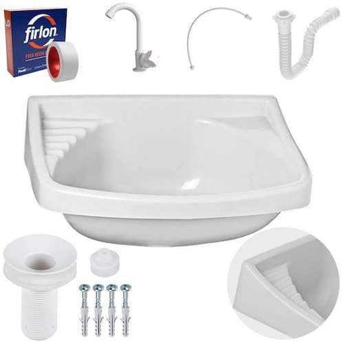 Pia lavatório banheiro 4,8l + torneira branca + sifão universal branco + engate flexível + fita veda rosca Pia lavatorio banheiro plástico 4,8l branca astra A pia plástica para banheiro da marca astra é uma opção prática e funcional para instalação em ambientes com espaços reduzidos. Com dimensões compactas e design simples, é fabricada em polipropileno de alta qualidade, o que garante sua resistência e durabilidade. Com capacidade de armazenamento de 4,8 litros, essa pia é indicada para uso em banheiros e lavabos, sendo uma solução ideal para quem busca uma alternativa econômica e de fácil instalação. Além disso, sua superfície lisa facilita a limpeza e manutenção, permitindo que ela se mantenha higiênica e livre de germes e bactérias. Especificações técnicas Material: polipropileno Dimensões: 35,5 x 26 x 15,8cm Possui porta sabonete: sim Possui furo para torneira: não Capacidade: 4,8l Locais sugeridos: banheiros e lavabos Acabamento: brilhante Marca: astra Cor: branca Formato: oval do fabricante: 90 dias Torneira para lavatório plástica branca japi Especificações técnicas Composição: plástico de engenharia abs , polipropileno pp e elastômeros Utilização: água fria Fabricação: nacional Sifão sanfonado universal 61cm branco astra O sifão sanfonado universal astra é um acessório essencial de encanamento, projetado para se adaptar a qualquer saída de válvula de pia e a qualquer tubulação de esgoto, independentemente de seu tamanho ou tipo. Além disso, o sifão sanfonado universal astra corrige possíveis desalinhamentos entre a cuba e a tubulação de despejo, evitando assim a formação de bloqueios e obstruções que possam causar vazamentos ou refluxo de água suja. Esse acessório é ideal para tanques, pias e cubas em banheiros, cozinhas e lavanderias. Especificações técnicas Material: polipropileno Entrada para válvula polegada : 7/8 Saída para tubos e conexões: 38, 40, 48 e 50mm Modelo: para pias, cubas, tanques, lavatórios e válvula americana Suporta temperatura até: 90 graus Cor: branco Acabamento: brilhante do fabricante: 90 dias Engate mangueira flexível para descarga 40cm x 1/2 branco astra Um engate flexível para descarga é um dispositivo para conectar um cano de esgoto ou uma mangueira de descarga a uma fonte de escoamento, como uma pia, banheira ou vaso sanitário. Ele é projetado para ser flexível, permitindo que ele se dobre e se mova sem quebrar ou vazar. Especificações técnicas Material: pvc flexível Temperatura indicada: somente água fria Pressão: 40 m.C.A Diâmetro: 1/2 Tipo de corpo: macho-fêmea e fêmea-fêmea Cor: branco Acabamento: brilhante do fabricante: 90 dias O kit segue com todos os itens para montagem e pronto para uso após a instalação A se aplica a todo e qualquer vício ou defeito aparente ou que não estejam em conformidade com o produto. - 90 dias para a pia plástica - 30 dias para a torneira - 90 dias para o sifão - 90 dias para o engate Itens inclusos 01 pia plástica 01 torneira 01 sifão 01 engate 01 rolo de fita veda rosca 12mm x 5m 01 suporte 01 válvula com tampa 04 buchas s8 02 parafusos 3,5 x 30mm 06 arruelas