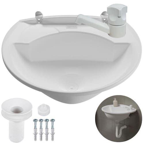 01 pia plástica 01 torneira 01 suporte 01 válvula com tampa 04 buchas s6 04 parafusos 3,5 x 30mm Ean: 7890015815910