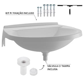ITENS INCLUSOS 01 Pia Plástica 01 Suporte 01 Válvula Com tampa 03 Buchas S10 02 Buchas S6 03 Parafusos 3,5 x 55mm 02 Parafusos 3,5 x 30mm 05 Arruelas 01 Torneira Plástica