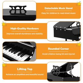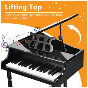 Informação do produto Cor: Preto Marca: HONEY JOY Material: Madeira projetada Tema: Música Dimensões do item CxLxA: 48,26 x 48,26 x 48,26 centímetros Faixa etária descrição: Criança Peso do Item: 8,16 quilogramas Instrumento: Piano Número de chaves: 30 Marca: Não Informado