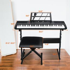 - ?Piano com teclado de 61 teclas para iniciantes? Contém um piano de keboard de 61 teclas, banco e suporte ajustáveis, fones de ouvido, bolsa de piano, adesivos Xi e microfones, o conjunto oferece 200 tons, 200 ritmos e uma sensação de piano tradicional de 50 músicas de demonstração, mantendo um design portátil e compacto que pode ser alimentado por uma fonte de alimentação ou baterias