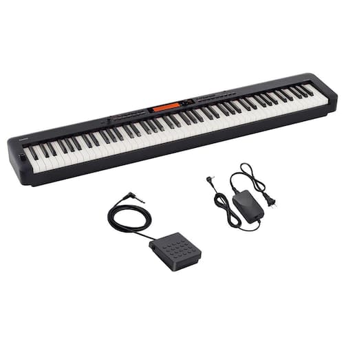 ESSA EMBALAGEM CONTÊM: 1X - Piano Digital Casio CDP-S160 Preto - 88 Teclas1X - Pedal (SP-3)1X - Estante para partitura1X - Adaptador CA (AD-A12150LW) CARACTERÍSTICAS PRINCIPAIS: - Trata-se de um Piano Digital sempre à mão, e pronto para ser tocado! A linha CDP-S da Casio é muito conhecida por ser compacta, simples uso, sonoridade forte, conforto e estrutura simples, mas muito elegante!- Desenvolvido diante de muitas novas tecnologias, o CDP-S160 traz mecanismos que oferecem o toque tátil de um piano, compatibilidade com suportes que complementam sua experiência com o instrumento, funcionalidade de uso intuitivo, Modo Dueto que permite o uso de 2 músicos no mesmo instrumento simultaneamente, e muito mais!- Venha conferir essa grande novidade! A Super Sonora traz para você mais uma novidade IMPERDÍVEL! o CDP-S160 da CASIO. Modelo de Piano Digital com Funcionalidades Impressionantes e Inovadoras, que ao Mesmo Tempo Traz Elegância e Simplicidade pelo seu Design Refinado! Vem pra Super Sonora! DESCRIÇÃO DO PRODUTO: DESIGN:- Design de estrutura s'lim com profundidade de apenas 232 mmSimples, mas eleganteA tecnologia de montagem de alta densidade patenteada da CASIO, com componentes miniaturizados e estrutura interna compacta, é fundamental para a estrutura fina deste piano. Duas variações de cores estão disponíveis: preto e vermelho. O esquema de cores simples e arrojado e a estética de design minimalista proporcionam uma experiência de piano simples, mas elegante.- Sempre à mão e pronto para ser tocadoA série CDP-S é compacta, leve e totalmente portátil. Como ele pode ser alimentado por energia CA ou baterias, você pode tocá-lo como quiser , mas também onde quiser, mas também onde quiser. SOM:- Alterações naturais de timbre para uma rica paleta de expressõesDez timbres essenciais, incluindo pianos de cauda e pianos elétricos, estão esperando para serem descobertos e tocados. As mudanças sutis em resposta à velocidade e ao tempo nos timbres do piano se tornaram ainda mais naturais, ampliando sua gama de expressões. TOQUE:- O mecanismo de teclado compacto oferece um toque tátil de pianoA série CDP-S é perfeita para uma grande variedade de gêneros musicais. O Sca'led Ha'mmer Actio'n Keyboard II, que é um mecanismo de ação com sensação de martelo igual ao de um piano de cauda, instalado em uma estrutura compacta, permite um equilíbrio perfeito entre a tecla e o toque responsivo.- Teclas de toque suaveO acabamento refinado na superfície da tecla evita o deslizamento causado pela transpiração, e as teclas proporcionam uma sensação confortável para os dedos, mesmo durante longas sessões. DADOS TÉCNICOS: Teclado:- Número de teclas: 88- Ações das teclas: Sc'aled Hamm'er A'ction Keyboard II- Resposta ao toque: 3 níveis de sensibilidade, desligado Tons:- Polifonia (máxima): 64- Número de tons integrados: 10- Camada: Sim Efeitos digitais- Simulador de hall de modo de som/Reverberação: Reverberação 4- Ch'orus: 4 Músicas:- Música de demonstração: 2 Recursos adicionais:- Conexão com o aplicativo: Cho'rdana Play for Piano versão 2.4- Gravador/Reprodução MIDI: 1 faixa (faixa do sistema), 1 música- Capacidade de dados de reprodução/gravador MIDI: Aproximadamente 2.500 notas- Modo Dueto: Sim- Metrônomo: 0 a 9 batidas; intervalo de tempo: 20 a 255- Pedais: Incluído: SP-3, unidade opcional de 3 pedais: SP-34, CS-470P (abafador, suave, sustenido)- Meio pedal abafador dos pedais: Sim (unidade opcional de 3 pedais)- Transposição de teclas: De 12 semitons a 0 a 12 semitons- Controle de afinação: A4 = 415,5 Hz a 440,0 Hz a 465,9 Hz- Afinação de escala (temperamento): Temperamento igual mais 16 variações- Outros: Desligamento automático MIDI:Sim Conectividade e armazenamento:- FONES/SAÍDA: 1 (minic'onector estéreo) terminal de SAÍDA multiuso- Pedais: 1 (abafador)- Conector para unidade de 3 pedais: Sim (SP-34, CS-470P)- AUDIO IN: Sim- USB tipo B: Sim Alto-falantes e amplificadores:- Tamanho dos alto-falantes: 2 de 12 cm × 6 cm oval- Sistema de alto-falantes: 2 alto-falantes- Amplificadores: 8W 8W- Alimentação Adaptador CA: AD-A12150LW- Unidade de bateria: 6 baterias tamanho AA- Duração contínua da bateria: Aproximadamente 13 horas Dimensões:- 1.322 x 232 x 99 mm Peso:- 10,5 kg Acessórios incluídos: - Pedal (SP-3)- Estante para partitura- Adaptador CA, (AD-A12150LW)