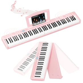 - [Teclado ponderado de tamanho completo de 88 teclas]: o teclado de piano tem 88 teclas ponderadas de tamanho normal e o volume mudará de acordo com a intensidade do desempenho do piano, que é mais próximo da sensação real do piano. Chaves de grão de madeira, antiderrapantes e resistentes a arranhões, tornam a mão mais delicada e o desempenho mais flexível