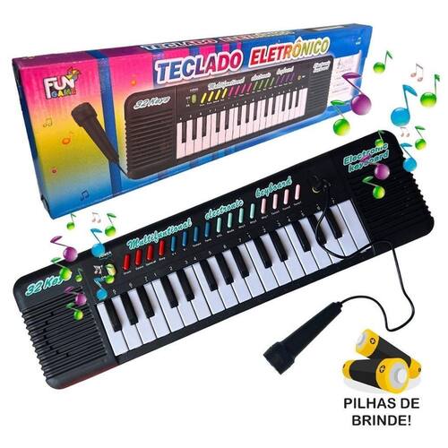 Piano Infantil Teclado Com Microfone Instrumento Musical Produto a pronta entregaEsse teclado é uma ótima maneira de se divertir e aprender ao mesmo tempo. Ele é perfeito tanto para a diversão, como também é uma ótima maneira de oferecer ao ambiente um toque descontraído e divertido. Pode proporcionar momentos muito agradáveis com a família e os amigos.Conteúdo: Teclado 32 teclas + Microfone.Imagens Protegidas por direitos autorais PPI Brand Protection Program . Homologação Inmetro: ABCP-BRI-0141-2021-01 Marca: Shopbr