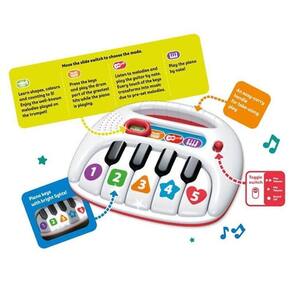 É uma verdadeira obra-prima para encantar os pequenos e despertar sua paixão pela música Com teclas coloridas que imitam as cores do arco-íris, esse piano traz luzes vibrantes que piscam conforme a melodia toca, criando uma experiência interativa e divertida.