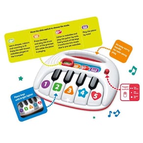 É uma verdadeira obra-prima para encantar os pequenos e despertar sua paixão pela música! Com teclas coloridas que imitam as cores do arco-íris, esse piano traz luzes vibrantes que piscam conforme a melodia toca, criando uma experiência interativa e divertida.