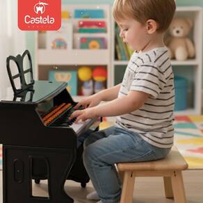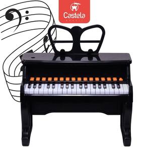 Piano musical de brinquedo preto com porta partitura castela Descrição: