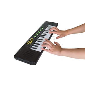 Piano Teclado Musical Infantil 32 teclas Eléctrico Keybord Piano Teclado Infantil Esse teclado é uma ótima maneira de se divertir e aprender ao mesmo tempo. Ele é perfeito tanto para a diversão, como também é uma ótima maneira de oferecer ao ambiente um toque descontraído e divertido. Pode proporcionar momentos muito agradáveis com a família e os amigos. Teclado Musical infantil SEM microfone Caracteristicas: Tipo de alimentação: 4 Pilhas AA Não Incluso Medidas do produto: 46cm comprimento x 13cm Altura x 2cm Largura Material: Plastico/PVC Cor: Preto fosco.INMETRO 000052/2021 Conteúdo da embalagem: - 01 TecladoHomologação Inmetro: 079902113999 Marca: Sk Miles