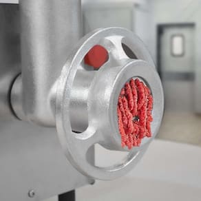 - Conta com um inovador sistema de proteção fixa, permitindo adicionar a carne no tubo de moagem tranquilamente, assegurando o operador ao manusear a máquina;