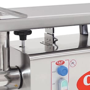 Proteção mecânica: Proteção fixa confeccionada em aço inox na bandeja do equipamento, impedindo o acesso das mãos na área de esmagamento do picador de carne.