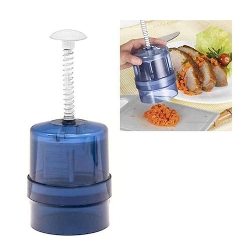 -o triturador multiuso de alimentos é uma peça essencial para a sua cozinha, em poucos segundos você terá o alho, a cebola, o tomate e outros vegetais picadinhos sem esforço -ele também esmaga frutas e legumes mais moles, como morango, pimentão, entre outros. Basta colocar o alimento sob as lâminas, colocar sobre uma superfície plana e empurrar a alça para baixo até que o alimento esteja cortado exatamente como você preferir. -muito mais facilidade e praticidade na sua cozinha, o produto tem um design moderno e lâminas de aço inox, além de um material resistente e super fácil de limpar.