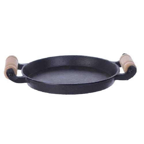 PICANHEIRA EM FERRO FUNDIDO REDONDA 20CM 2 ALÇAS DE MADEIRA. Pode ser usada para carne bovina, suína, ovina, aves, frutos do mar e legumes, com a picanheira em FERRO FUNDIDO é possível grelhar alimentos de todos os tipos para todos os gostos.