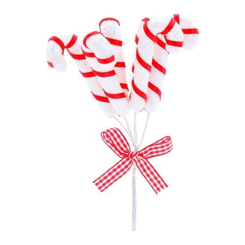 Pick 6 Candy Canes Vermelho E Branco Com Laço Xadrez