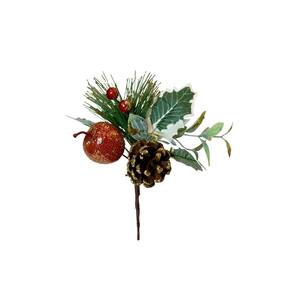 Modelo: Pick natalino com folhagem, pinha e fruta decorada