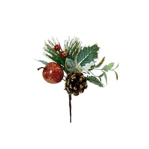 Transforme sua decoração natalina com este lindo pick decorativo de 17cm, composto por folhagens, pinha natural e fruta artificial com acabamento em glitter dourado, que proporciona brilho e elegância ao ambiente.