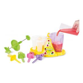 Muito divertida, este brinquedo conta com 4 palitinhos coloridos laváveis, forma e copo misturador. É só misturar frutas com iogurte ou suco! Fazer picolé virou brincadeira!