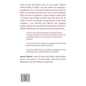 "Autor do best-seller Quem mexeu no meu queijo?, Spencer Johnson presenteia seus leitores com uma narrativa de superação e aprendizado. Picos e vales relata a história de um jovem que não estava feliz no vale onde morava e todos os dias imaginava como era viver no pico. Quando ele não pôde mais lidar com sua curiosidade, decidiu subir. A jornada para cima, como todas as jornadas da vida, era difícil e demorada, fazendo com que ele ficasse cansado e frustrado por ter perdido o pôr-do-sol. Enquanto ainda estava reclamando por sua perda, o rapaz encontrou um homem velho, com quem iniciou uma conversa. O senhor perguntou ao jovem o que ele achava da vista. O rapaz estava tão focado no pôr-do-sol que não notou a beleza das estrelas que brilhavam acima dele. Após conversas e experiências, o jovem aprende a refletir sobre os caminhos que escolheu e percebe que, entre dois picos, há sempre um vale: um momento de avaliação das decisões tomadas e de concentração nos objetivos a serem alcançados. No dia seguinte, ele agradece ao velho e volta ao vale. Aplicando as lições que aprendeu em sua vida, se transformou para melhor. O jovem aprendeu que, para chegar ao seu auge, é necessário ter uma visão sensata, que faça sentido para você, de forma realista e alcançável. Picos e vales não são apenas os momentos bons e ruins que acontecem. São também como você se sente por dentro e como reage a acontecimentos externos. Os erros que comete nos momentos bons de hoje geram os momentos ruins de amanhã. As ações sábias que você realiza nos momentos ruins de hoje geram os momentos bons de amanhã. Picos e vales é um best-seller, com mensagens expressivas, cria respostas assertivas para problemas pessoais ou no local de trabalho. Entenda que o caminho para fora do vale aparece quando você escolhe ver os picos de maneira diferente. "
