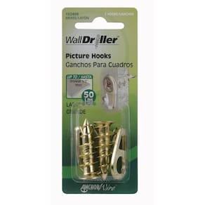 O cabide de imagens Hillman Wall Drillers Picture Hook No. 8 contém objetos de até 50 libras. O preço do cartão de latão de 2 conjuntos Discovery Acc é indicado para quantidades com desconto a granel de 10 unidades por caixa.
