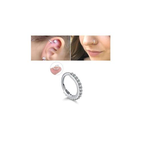 Piercing argola prateado com pedras de zircônia. Tamanho 6 mm de diâmetro interno. Valor para 1 peça, não é o par