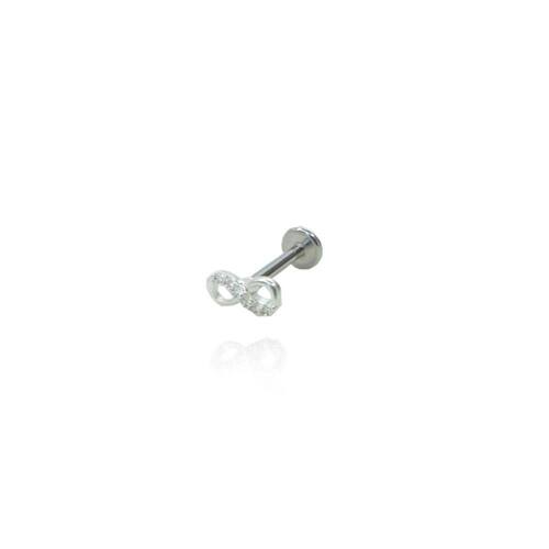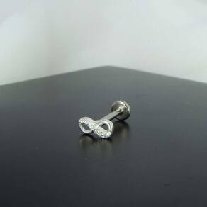 Feito em prata 925 de alta qualidade, esse piercing apresenta o símbolo do infinito com uma mini zircônia brilhante, adicionando um toque de elegância ao seu visual.
