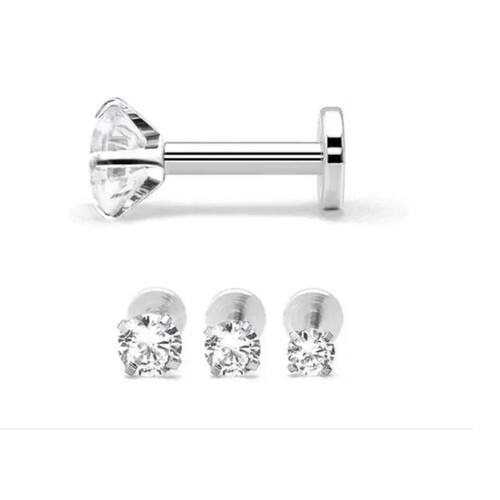 Piercing para tragus, labret, helix, etc. , ponto de luz com pedra de zirconia. Rosqueamento pela frente com base reta. Tamanhos das pedras: 2 mm