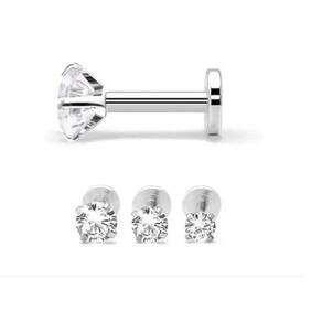 Piercing para tragus, labret, helix, etc. , ponto de luz com pedra de zirconia. Rosqueamento pela frente com base reta. Tamanhos das pedras: 4 mm