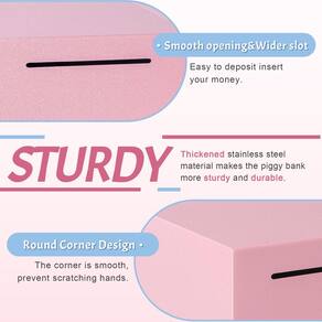 Conteúdo da embalagem: 1 cofrinho de aço inoxidável de 15 cm para abrir 2 adesivos brilhantes dourados 4 almofadas adesivas antiderrapantes - Cofrinho adulto: Este cofrinho inaberto é feito de aço inoxidável com uma superfície rosa fosco. A aparência simples faz com que pareça mais uma decoração do que um banco! O estilo visual moderno torna este banco de poupança mais adequado para adultos - Fácil de economizar dinheiro: o cofrinho de aço inoxidável facilita economizar dinheiro porque você não pode tirar dinheiro sem quebrá-lo. Todos os 6 lados são soldados com placas de aço inoxidável resistentes, com apenas um compartimento para moedas - Presentes de Natal ideais: este cofrinho indestrutível é a escolha perfeita quando se trata de escolher presentes para seus amigos, seus filhos, aniversários, Ano Novo, Natal, Ação de Graças e Dia dos Namorados. Ajudará adultos, adolescentes e crianças a criar um orçamento e economizar dinheiro - Banco para todos: a caixa de economia de metal tem três tamanhos que atendem às necessidades de todos, pequeno, médio e grande. O banco médio mede 15 x 15 x 15 cm. Cada cofrinho de metal tem economias diferentes. Selecione o tamanho apropriado antes de comprar - Deve quebrar para abrir: quando você precisar tirar seu dinheiro deste cofrinho inquebrável, você precisará de um martelo para abri-lo. Abra apenas depois de concluir o alvo ou em caso de emergência. Lembre-se de que, para este cofrinho adulto, abra o mesmo que destruir - Estamos sempre ligados: sinta-se à vontade para entrar em contato conosco se tiver alguma dúvida ou dúvida sobre este cofrinho seguro. A satisfação do cliente é nosso objetivo constante. Não importa o problema, faremos tudo o que pudermos para fornecer uma solução 100% satisfatória
